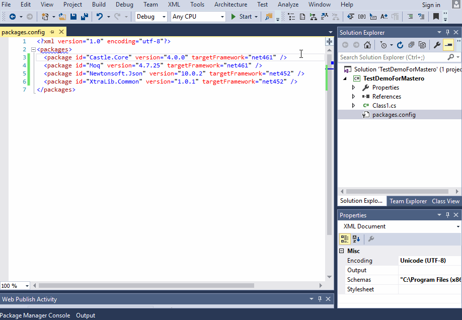 net visual studio package manager console solution