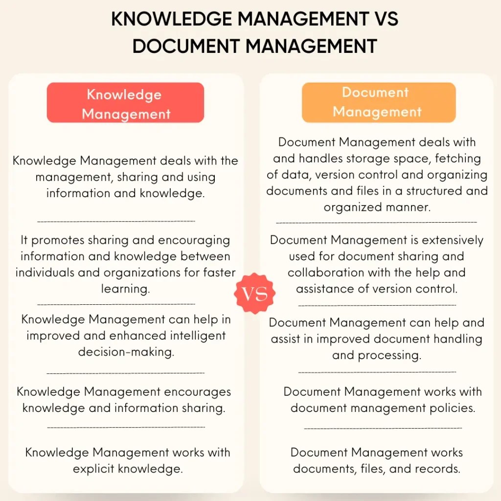 knowledge management document management top differences