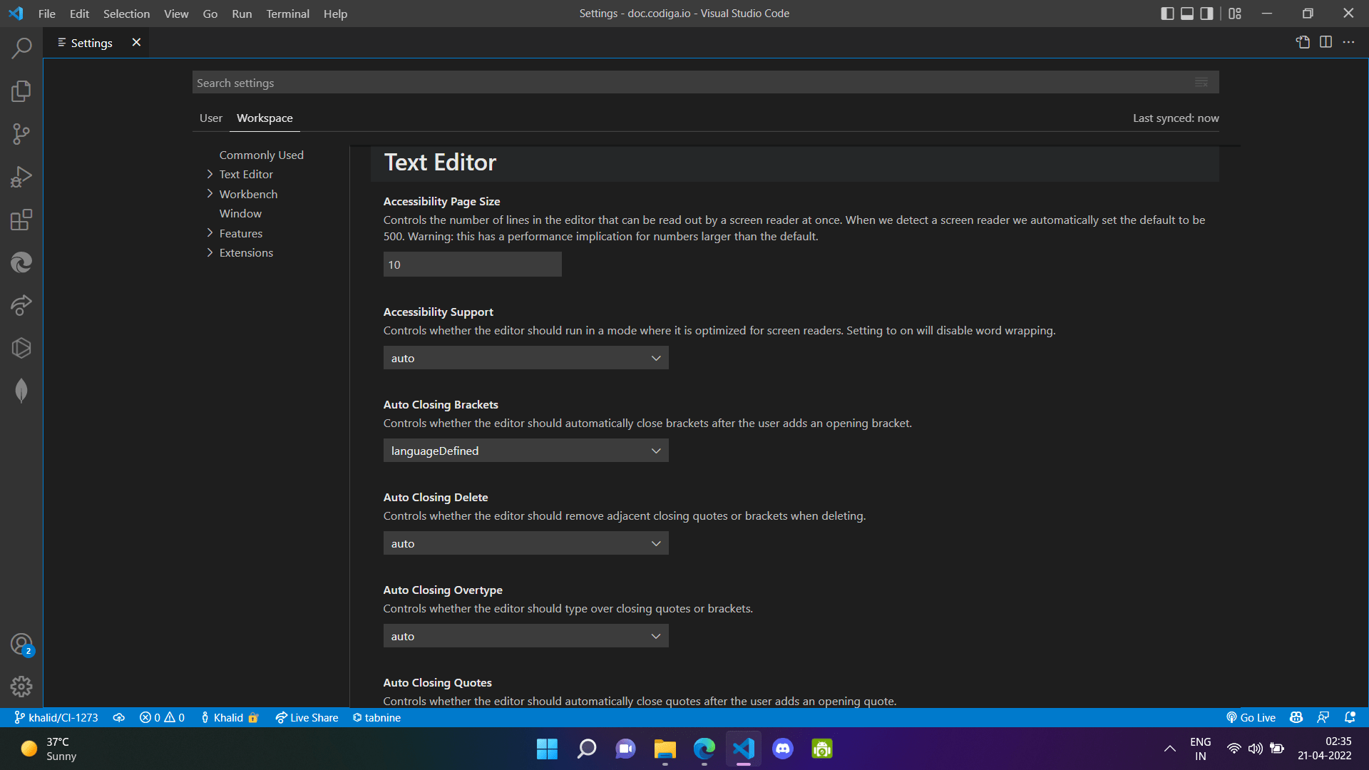 Berbagai Contoh Vs Settings