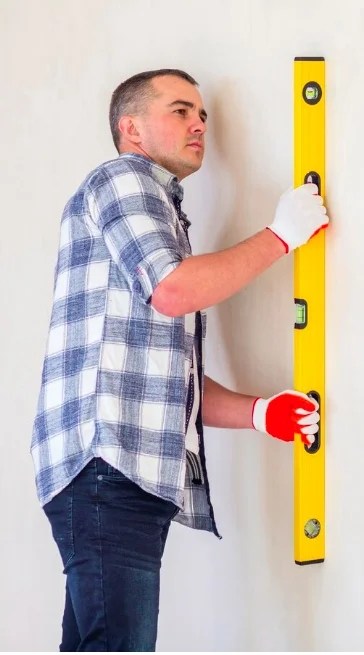 working process making walls level apartment construction