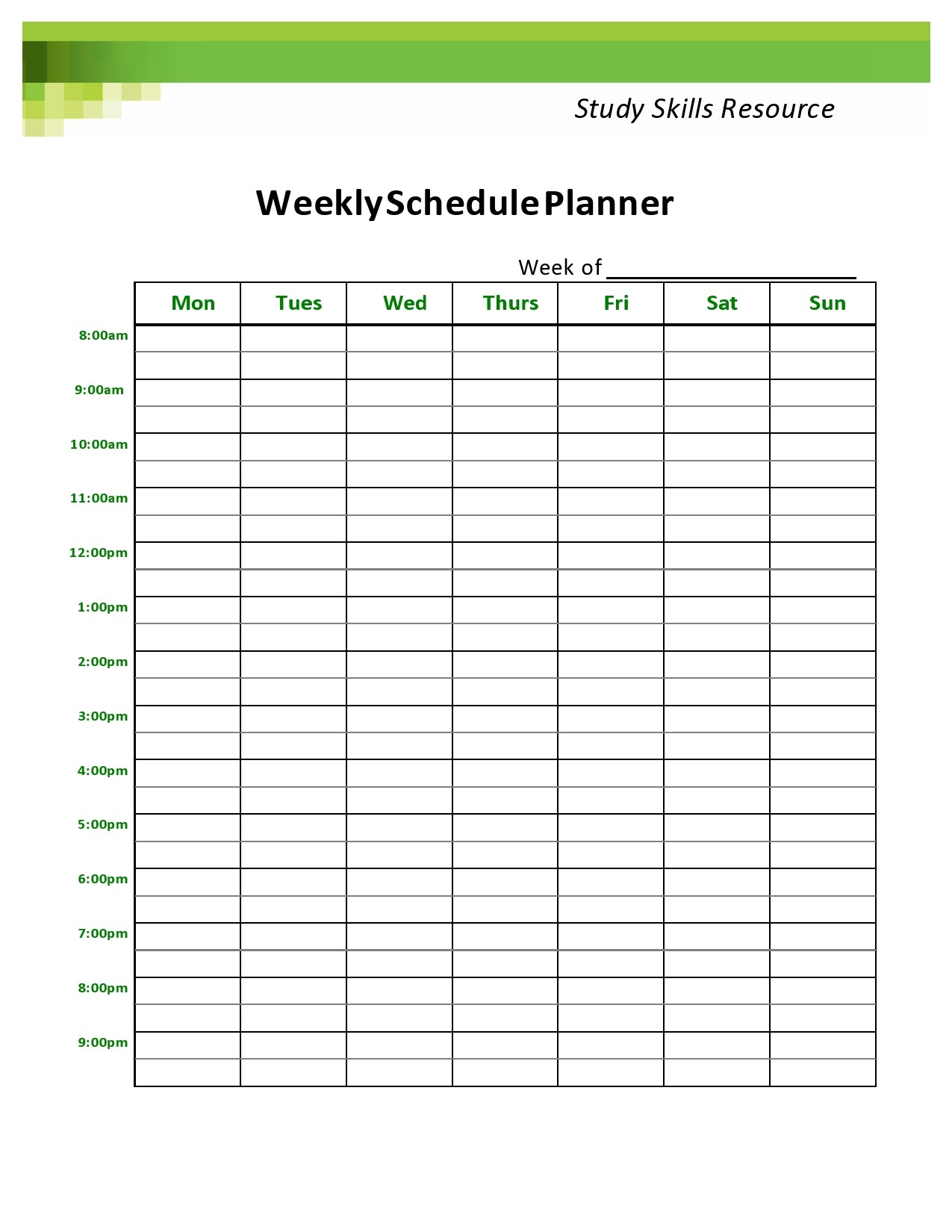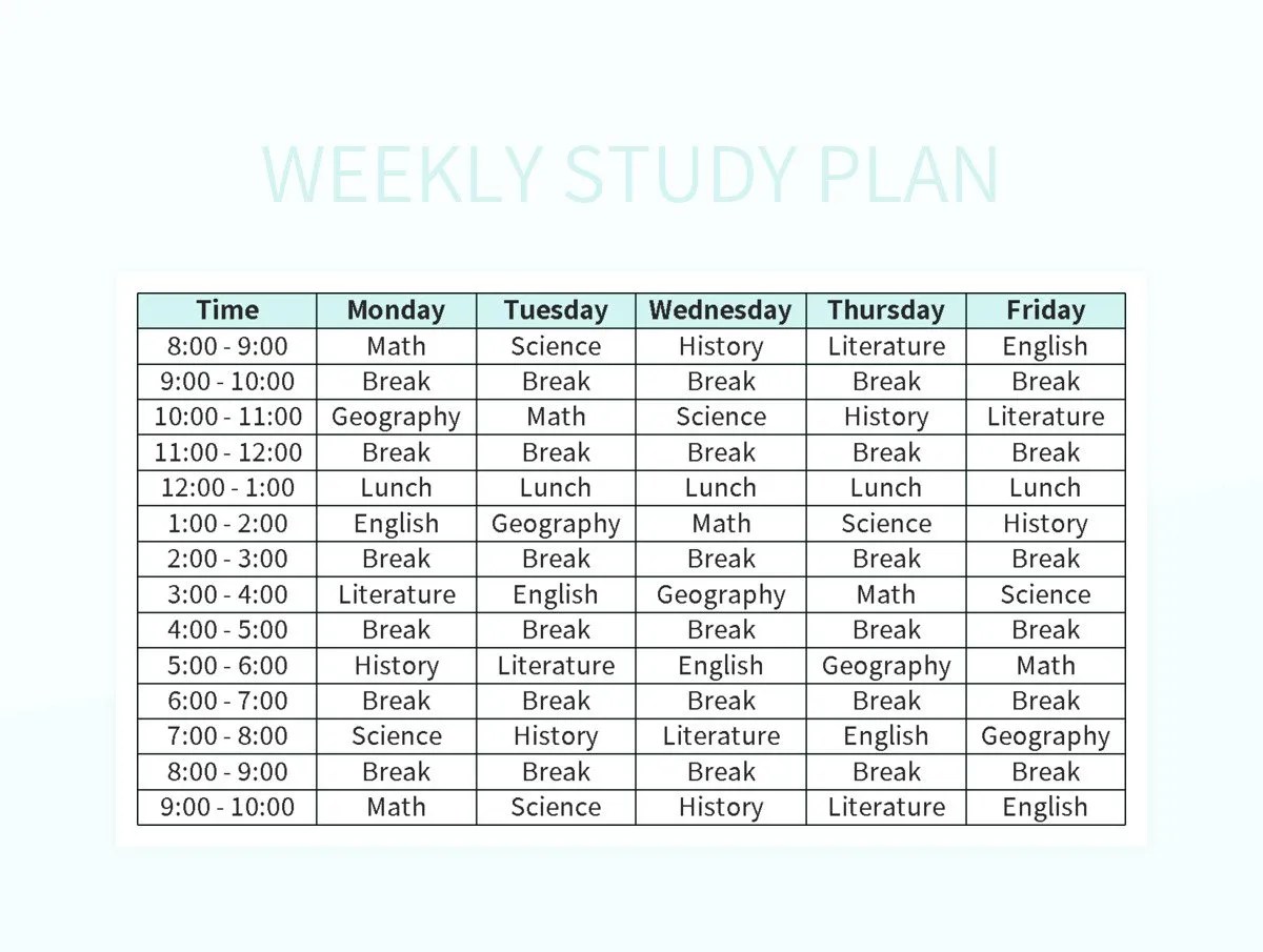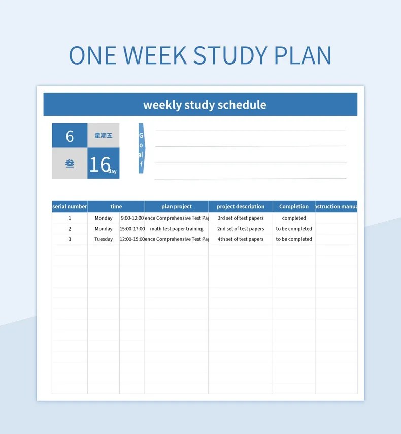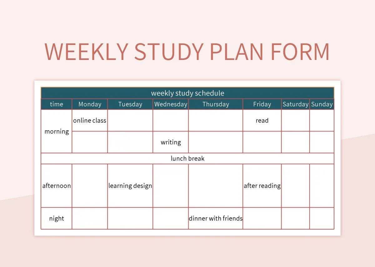 Berbagai Contoh Weekly Study Plan Template
