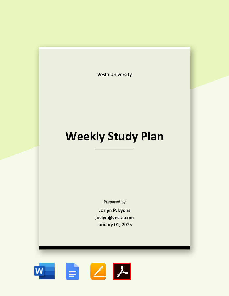 Jika kamu sedang mencari Weekly Study Plan Template, maka anda berada di halaman yang tepat. Kami menyediakan aneka Weekly Study Plan Template yang bisa anda pesan online. Silakan hubungi kami via +6282245078486, jangan lupa sertakan juka gambar yang diinginkan.