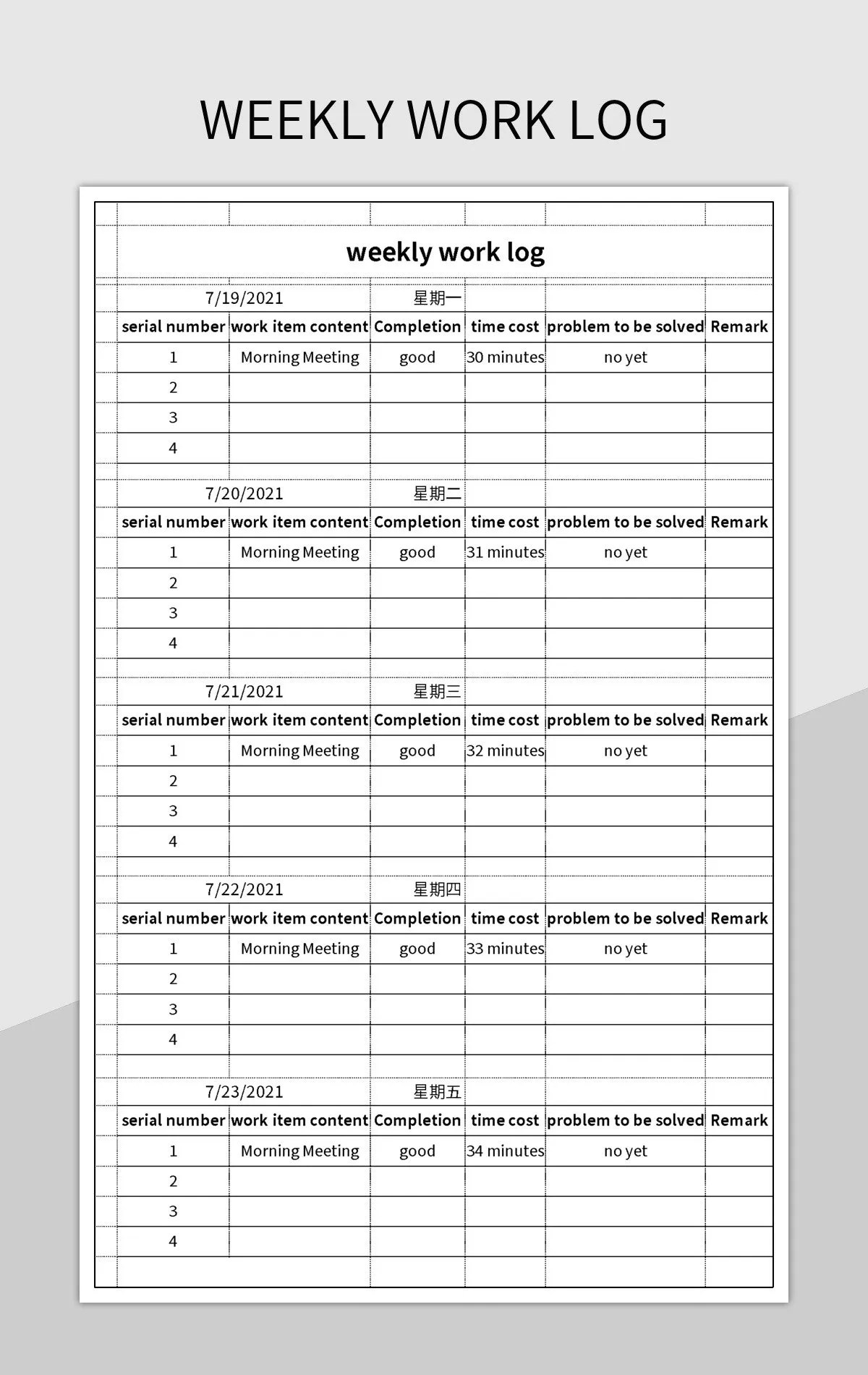 Berbagai Contoh Weekly Task Log Template