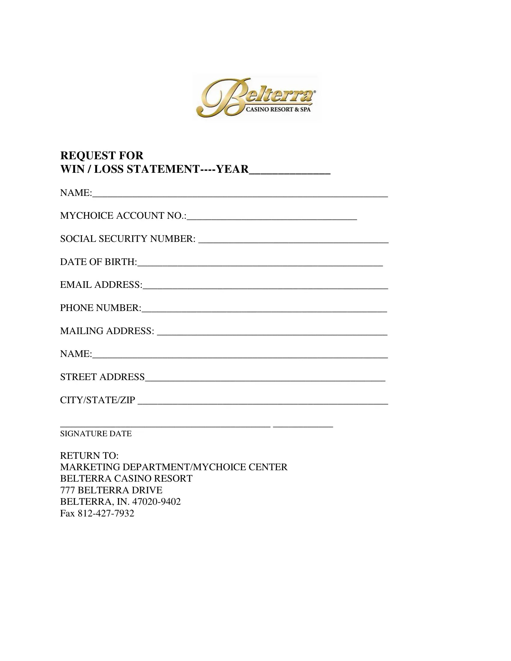 lady luck win loss statement fill printable fillable blank