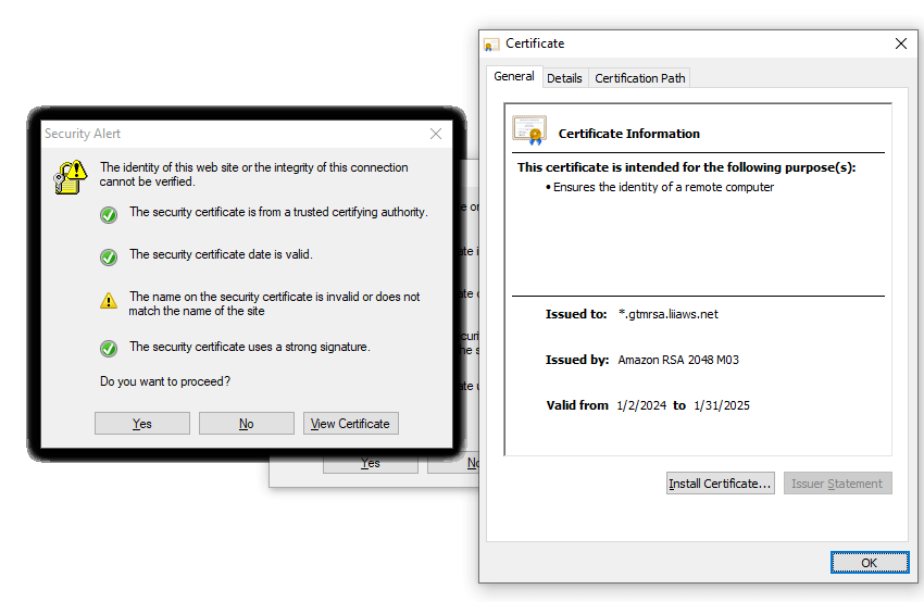 security alert certificate windows finding problematic