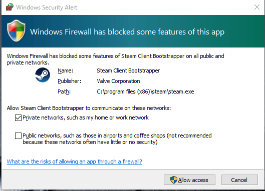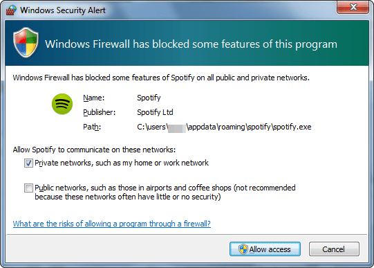 firewalls windows security alert dialog default