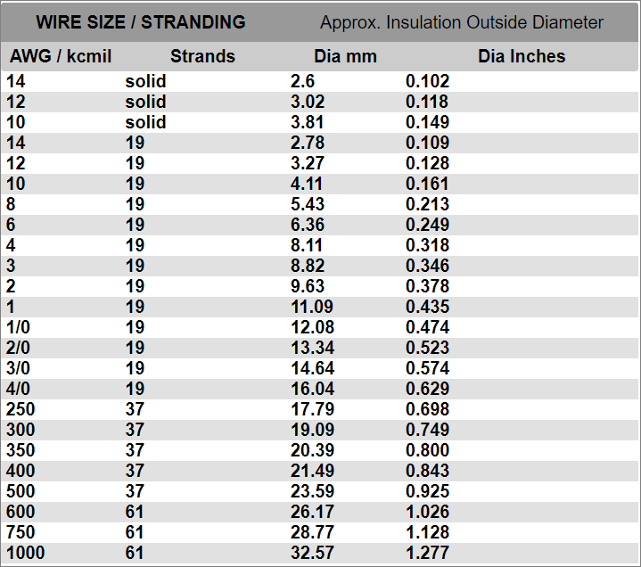 Berbagai Contoh Wire Size Chart