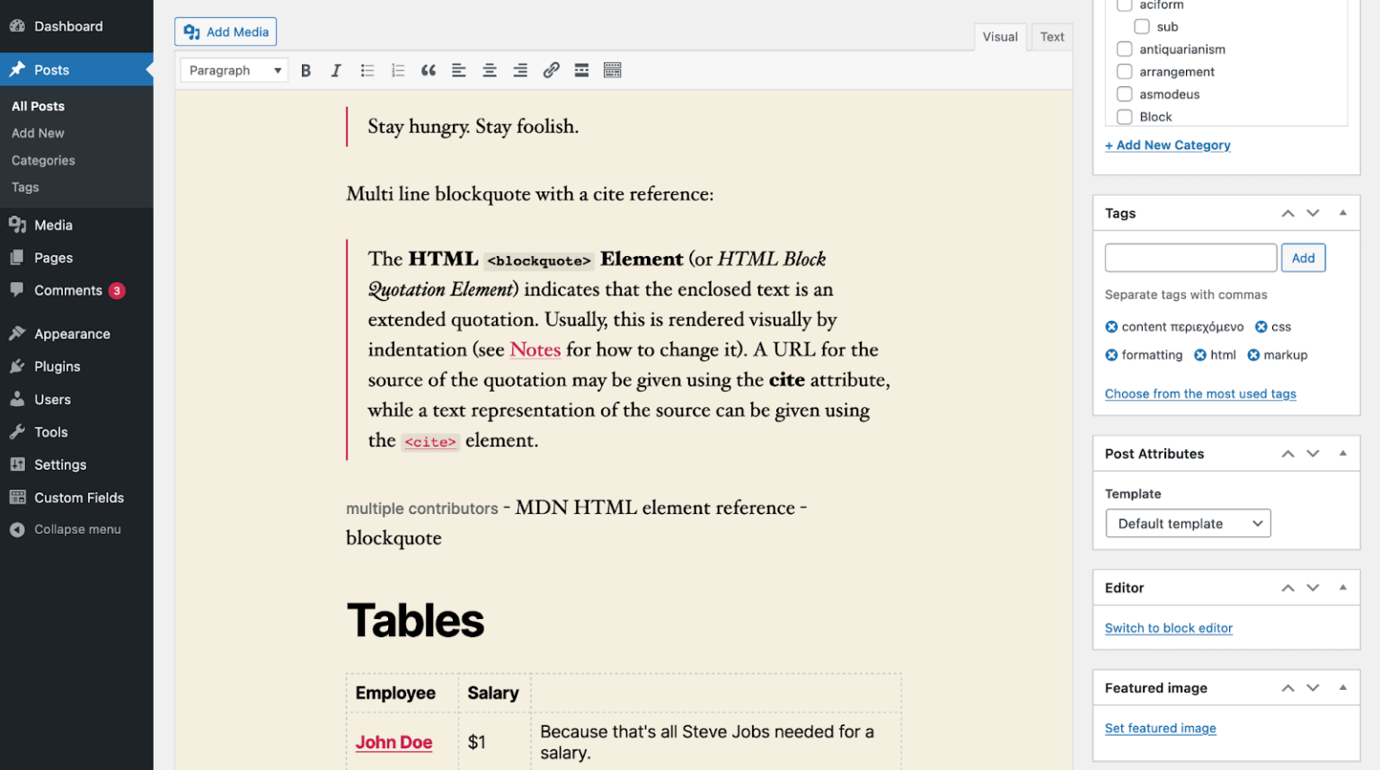 Berbagai Contoh Wordpress Editor