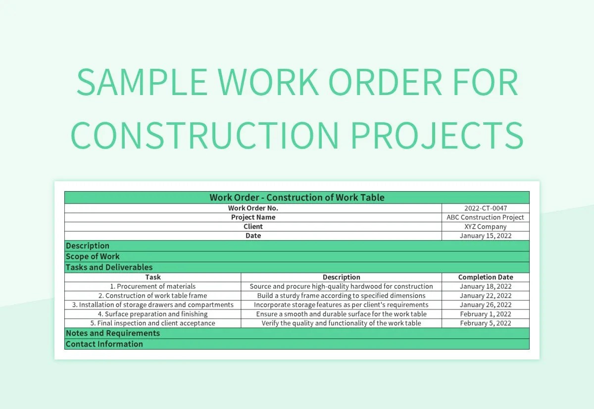 sample construction work order template apple numbers word pages