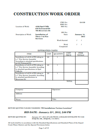 construction work order template customisable template