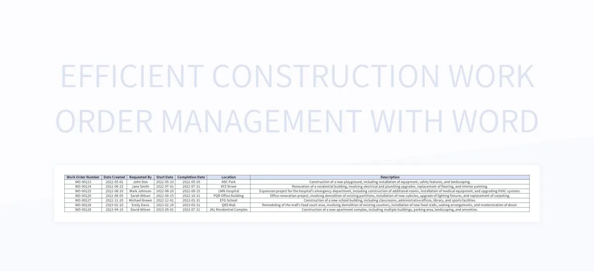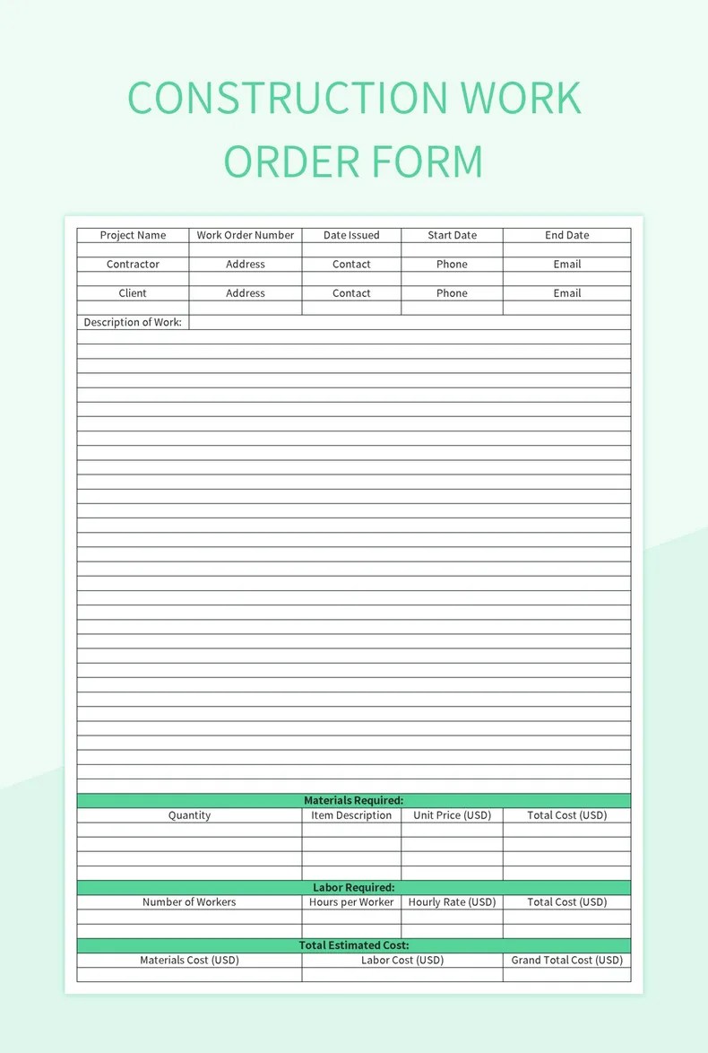 construction work order template word google docs