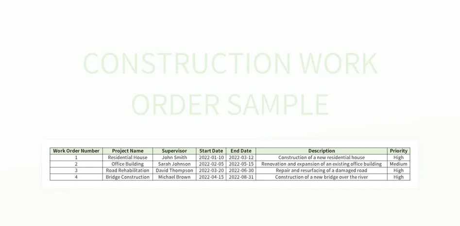 construction work order sample excel template google sheets file