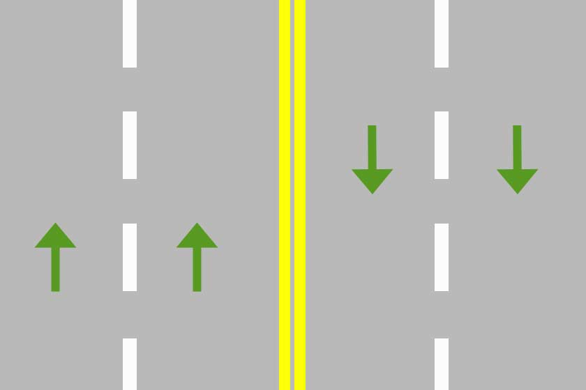 solid yellow represent divided highway roadway