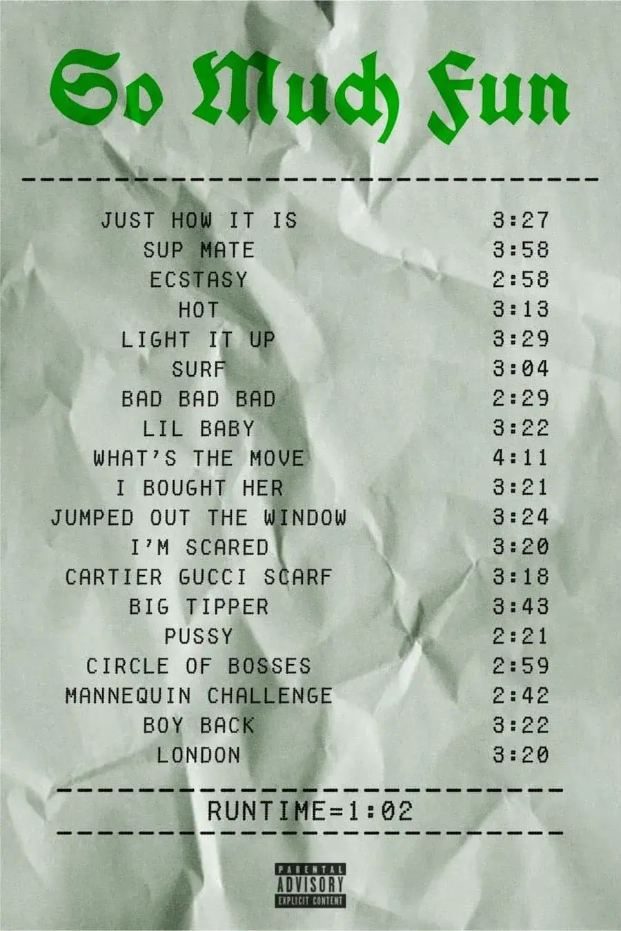 Jika kamu sedang mencari Young Thug So Much Fun, maka anda berada di halaman yang tepat. Kami menyediakan aneka Young Thug So Much Fun yang bisa anda pesan online. Silakan hubungi kami via +6282245078486, jangan lupa sertakan juka gambar yang diinginkan.