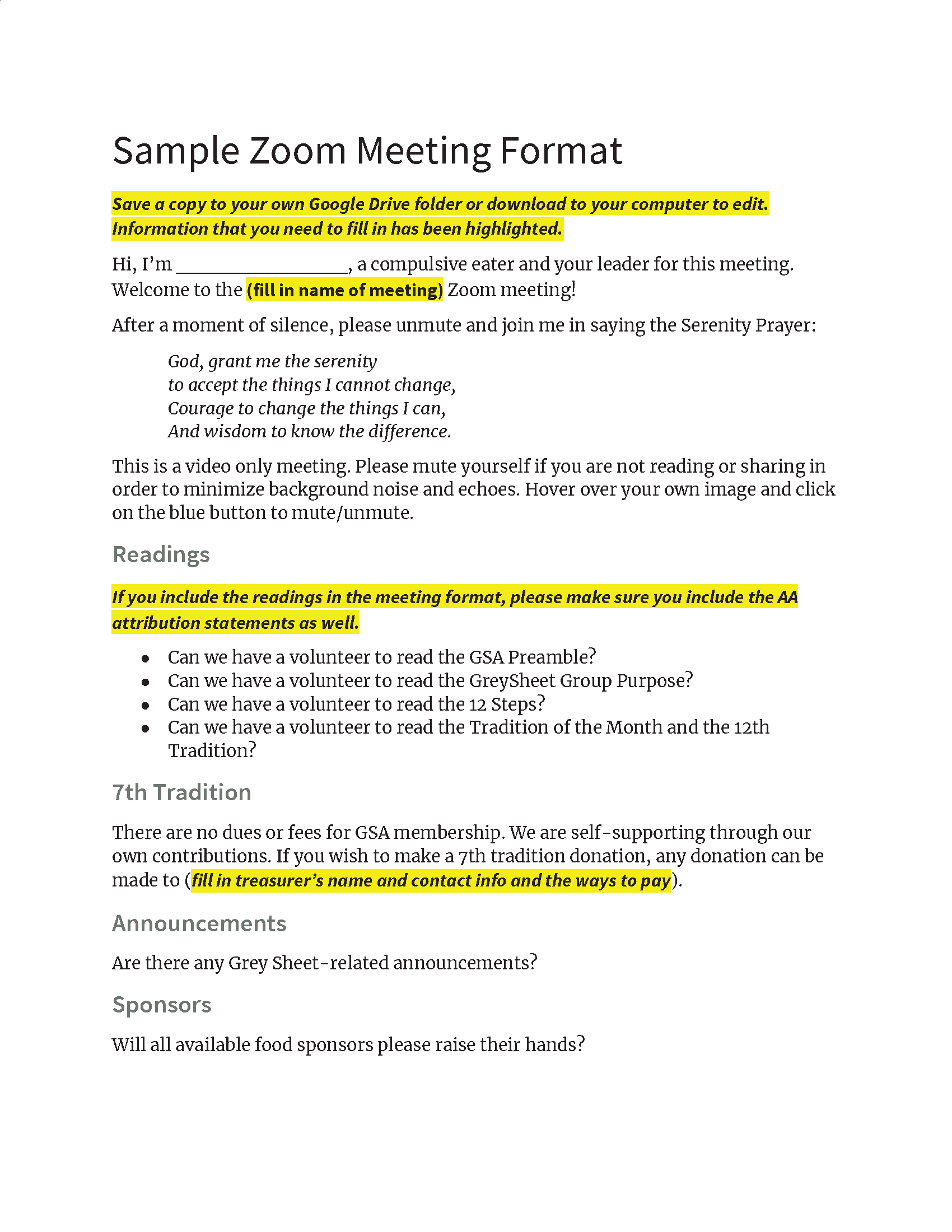 greysheeters anonymous sample zoom meeting format